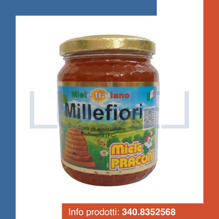Miele millefiori italiano zona di produzione Romagna. particolarmente indicato per i dolci e tutte le lavorazioni di pasticceria, accontenta i consumatori piu' esigenti