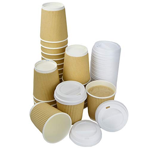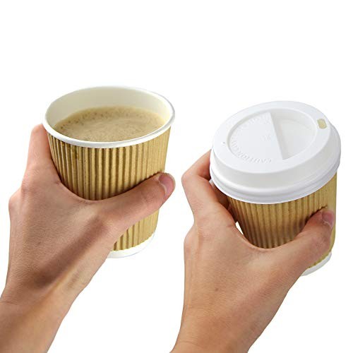 pz 100 bicchiere termico in carta ml 250 in cartone termico ondulato per bevande calde pz 100 coperchi bianchi in plastica con beccuccio
