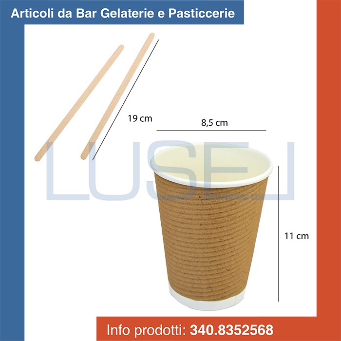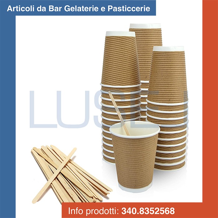 Confezione: 100 bicchieri termici e 100 stecche in legno AL MIGLIOR PREZZO!