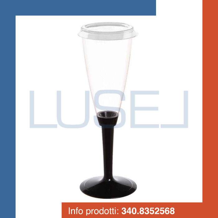 - Flute in plastica base nera + coppa trasparente + coperchio per champagne