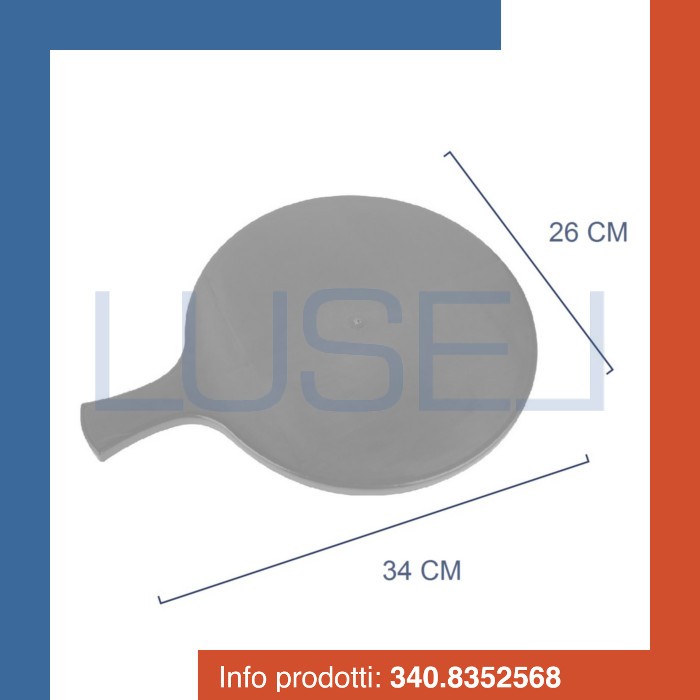 Diametro: cm 26 Lungezza (comprensiva di manico): cm 34 Altezza: cm 2