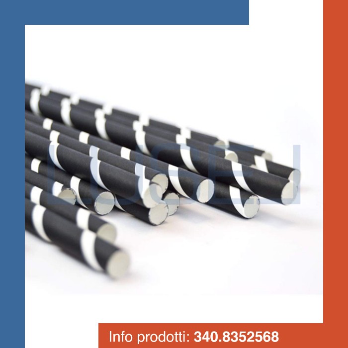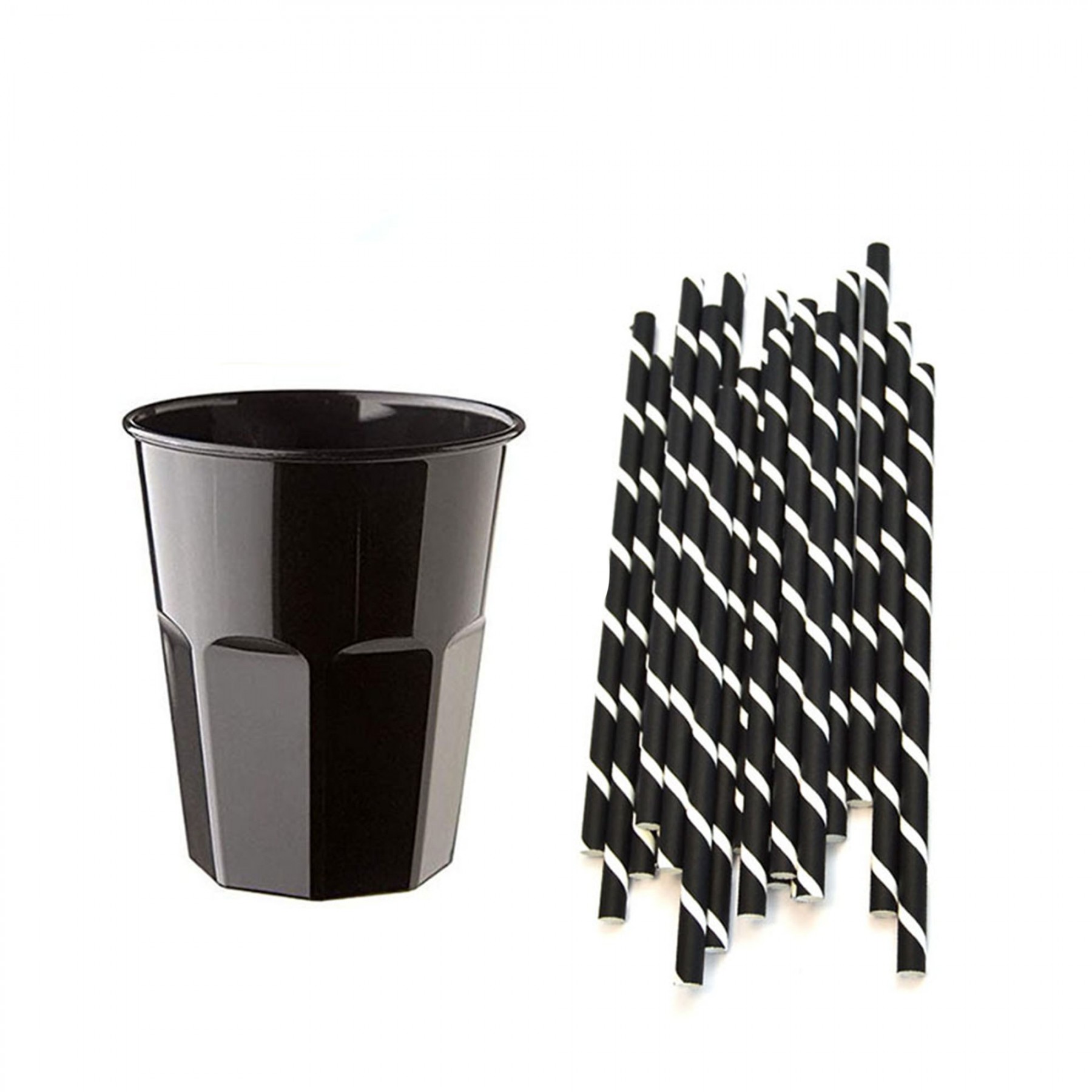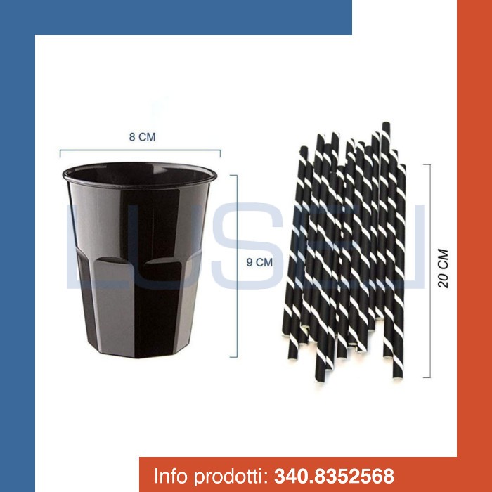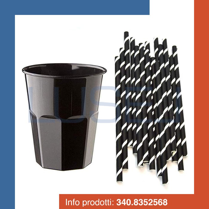 - Bicchieri in plastica + cannucce nere con decorazione bianca a spirale alta cm da 20 cm